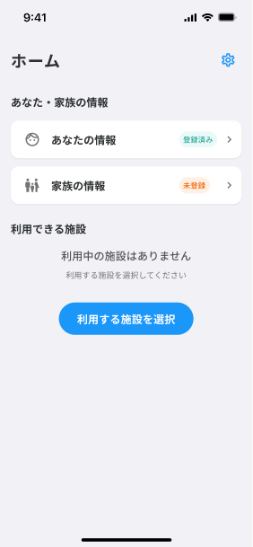 ホーム画面から 歯車 のマークをタップすると、設定画面が表示されます。