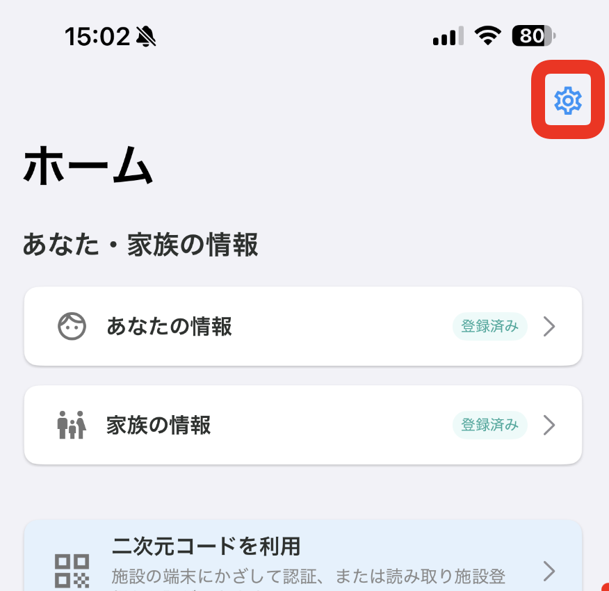 * ホーム画面右上の歯車マークをタップしてください。