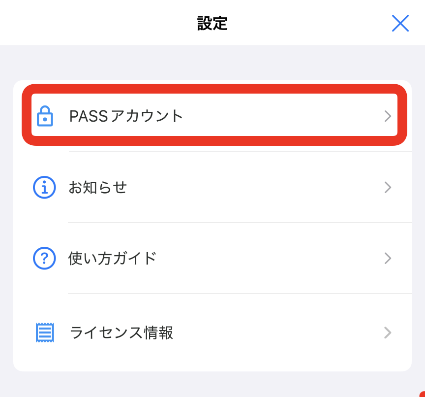 * 設定画面が表示されますので、PASSアカウントをタップしてください。
