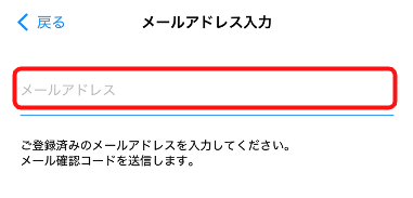 * メールアドレスを入力する画面が表示されますので、ご登録されているメールアドレスを入力し、送信をタップします。